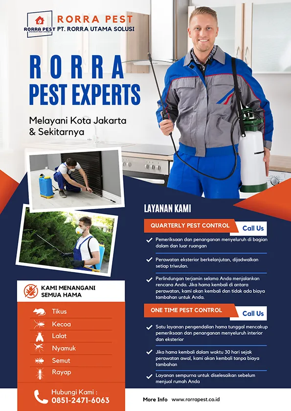 Kami berkomitmen untuk memberikan layanan terbaik, aman, dan terpercaya. Bersama tim profesional kami, Rorra Pest hadir untuk membantu menciptakan lingkungan yang bersih, sehat, dan nyaman, bebas dari segala jenis gangguan hama.
