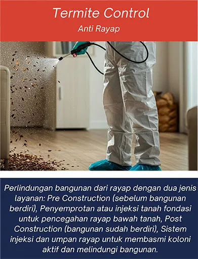 adalah perusahaan jasa pengendalian hama profesional yang berdomisili di Jakarta Barat. Kami menyediakan layanan pest control terpadu untuk kebutuhan rumah tangga, gedung perkantoran, restoran, industri makanan, gudang, sekolah, hotel, hingga institusi pemerintahan.